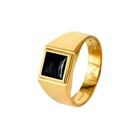 Ασημένιο 925 ανδρικό δαχτυλίδι με κίτρινο επιχρύσωμα και στο κέντρο τετράγωνη μαύρη πέτρα όνυχα.