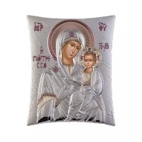 Ασημένια εκκλησιαστική εικόνα, ασύμμετρη, που απεικονίζει την Παναγία Γιάτρισσα.