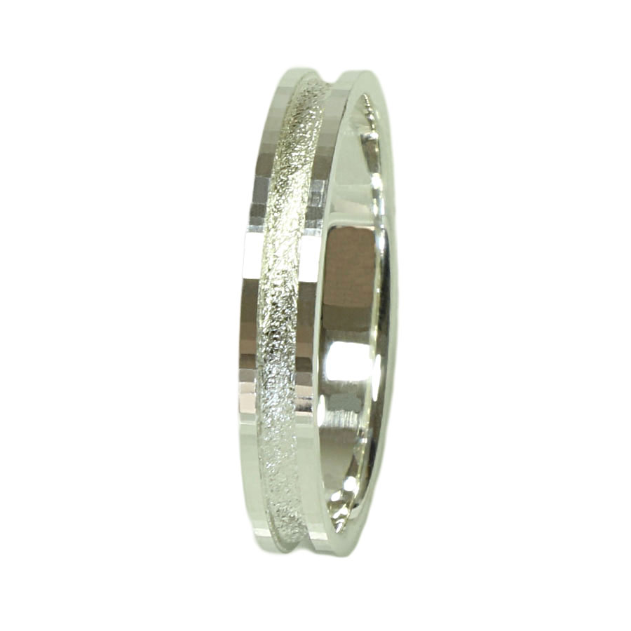 Λευκόχρυση βέρα γάμου και αρραβώνα Μatteo 9 καρατίων και 3mm πλάτος, με ένα παχύ κανάλι στο κέντρο της με επεξεργασία διαμανταρίσματος και δύο λουστρέ κανάλια στα πλαϊνά.