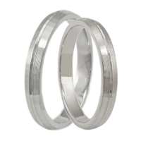 Λευκόχρυση βέρα γάμου και αρραβώνα 9 καρατίων στα 3mm, σε όμορφη σατινέ επεξεργασία και ένα λουστρέ κανάλι στο κέντρο της.
