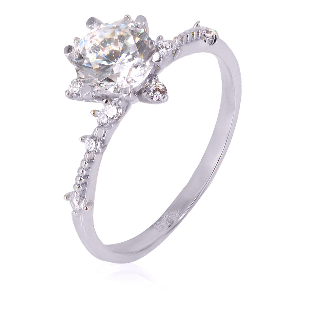 Μονόπετρο Λευκόχρυσο 14 Καράτια 4345-3ELE