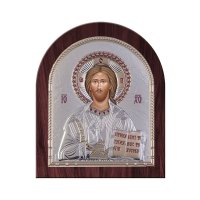 Ασημένια εικόνα 925 με θέμα τον Χριστό με επίχρυσες λεπτομέρειες και ξύλινο οβάλ πλαίσιο.