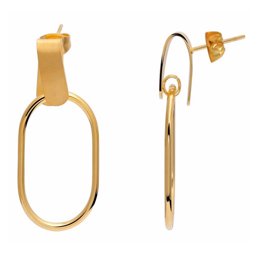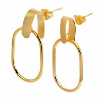 Ατσάλινα γυναικεία κρεμαστά σκουλαρίκια, σε χρυσαφί χρώμα, με σχέδιο οβάλ κρίκοι.