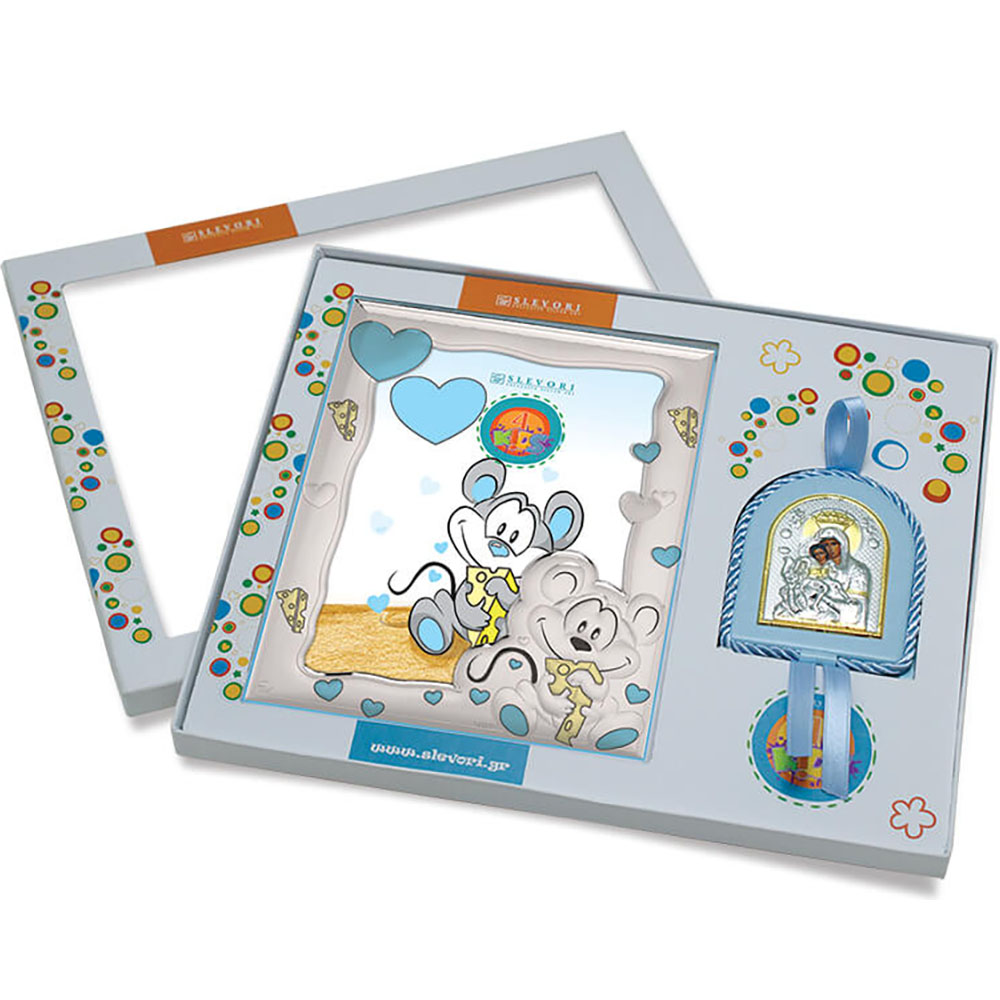 Ασημένιο Παιδικό Σετ με κορνίζα 9060-901AWM-HG-B