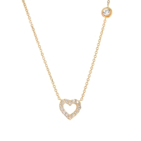 Χρυσό κολιέ 9 Καρατίων με καρδούλα και μονόπετρο. Οι πέτρες που φέρει είναι ζιργκόν swarovski ®.