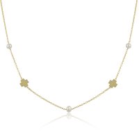 Xρυσό κολιέ 9 Kαρατίων με διακοσμητικά στοιχεία μικρό σταυρό και μαργαριτάρια.