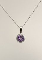 Λευκόχρυσο κολιέ 18 Καρατίων με αμέθυστο και διαμάντι.