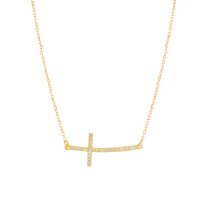 Χρυσό κολιέ 9 Καράτια με οριζόντιο σταυρό που φέρει λευκές πέτρες ζιργκόν Swarovski ®.