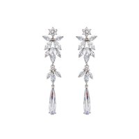 Σκουλαρίκια κρεμαστά Gloria Hope, από ορείχαλκο σε ασημί χρώμα με λευκές πέτρες ζιργκόν Swarovski.