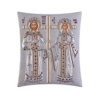Ασημένια εκκλησιαστική εικόνα, ασύμμετρη, που απεικονίζει τον Άγιο Κωνσταντίνο και την Αγία Ελένη.