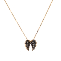 Χρυσό Κολιέ 9 Καρατίων με σχέδιο φτερά αγγέλου που φέρουν μαύρες πέτρες ζιργκόν swarovski ®.