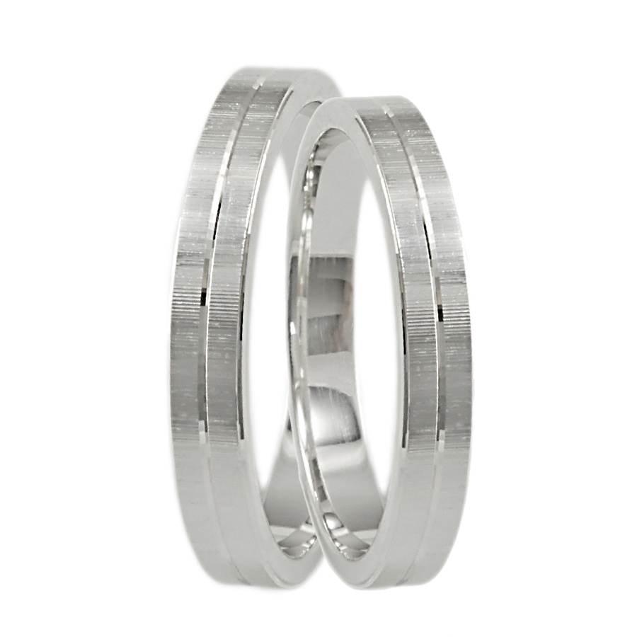 Λευκόχρυση βέρα γάμου και αρραβώνα 9 καρατίων και πλάτος 3mm, με σατινέ φινίρισμα και εξωτερικά κάθετα λούκια. Μοντέρνα και κομψή βέρα για να επισφραγίσετε την αγάπη σας!
