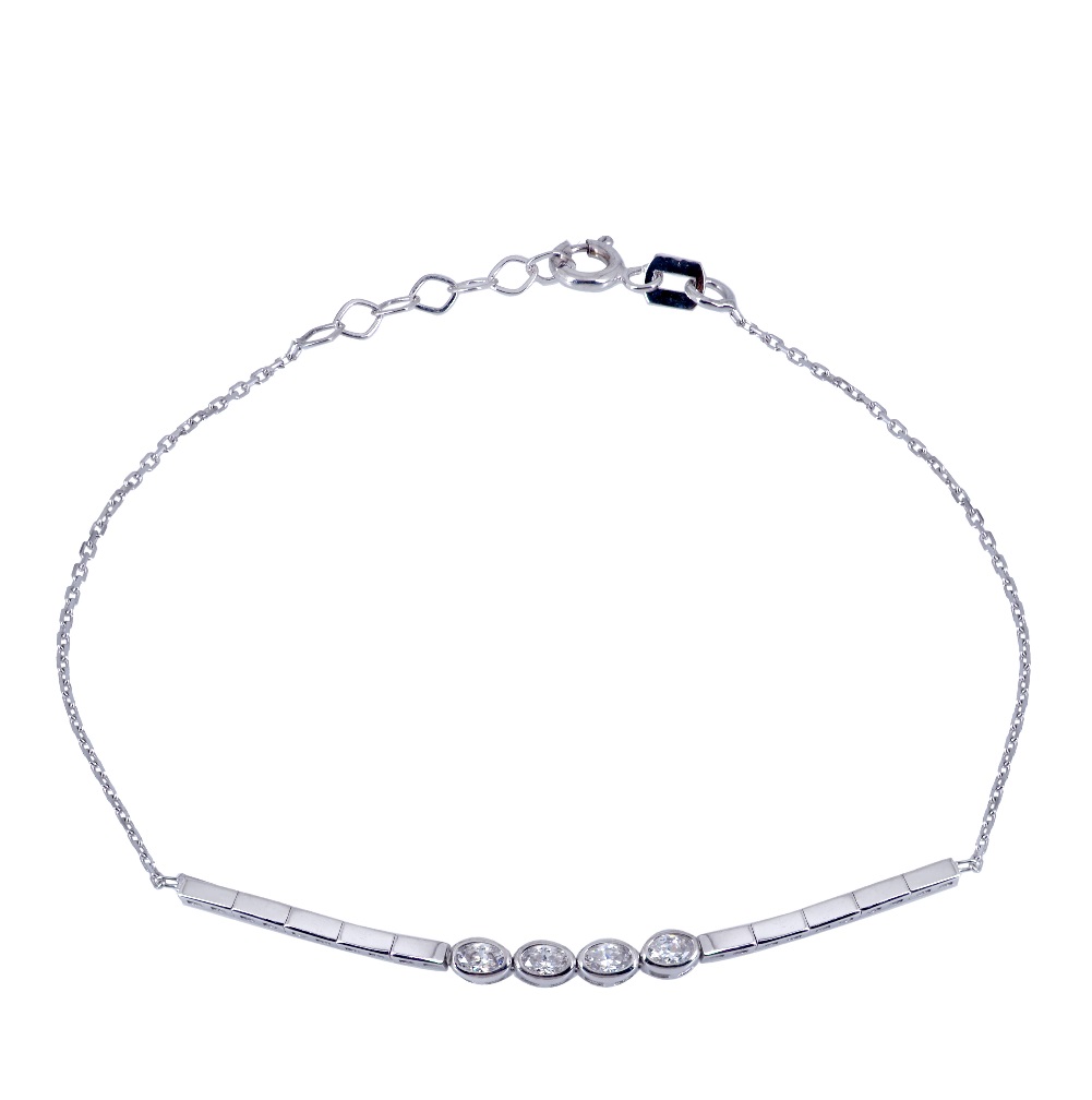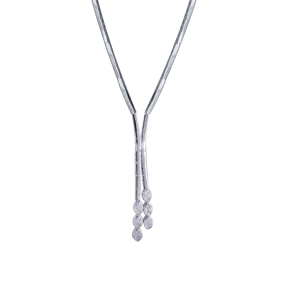 Λευκόχρυσα σκουλαρίκια κρεμαστά 14 Καρατίων με ιδιαίτερο μοντέρνο σχέδιο με ορθογώνια στοιχεία και με πέτρες ζιργκόν Swarovski σε οβάλ σχήμα.