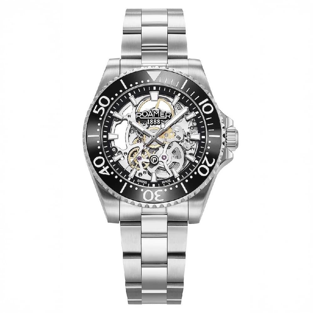 Κάσα: Ασημί ανοξείδωτο ατσάλι με μαύρη στεφάνη