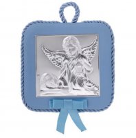 Ασημένια 925 εικόνα κούνιας με μουσική που απεικονίζει τα αγγελούδια.