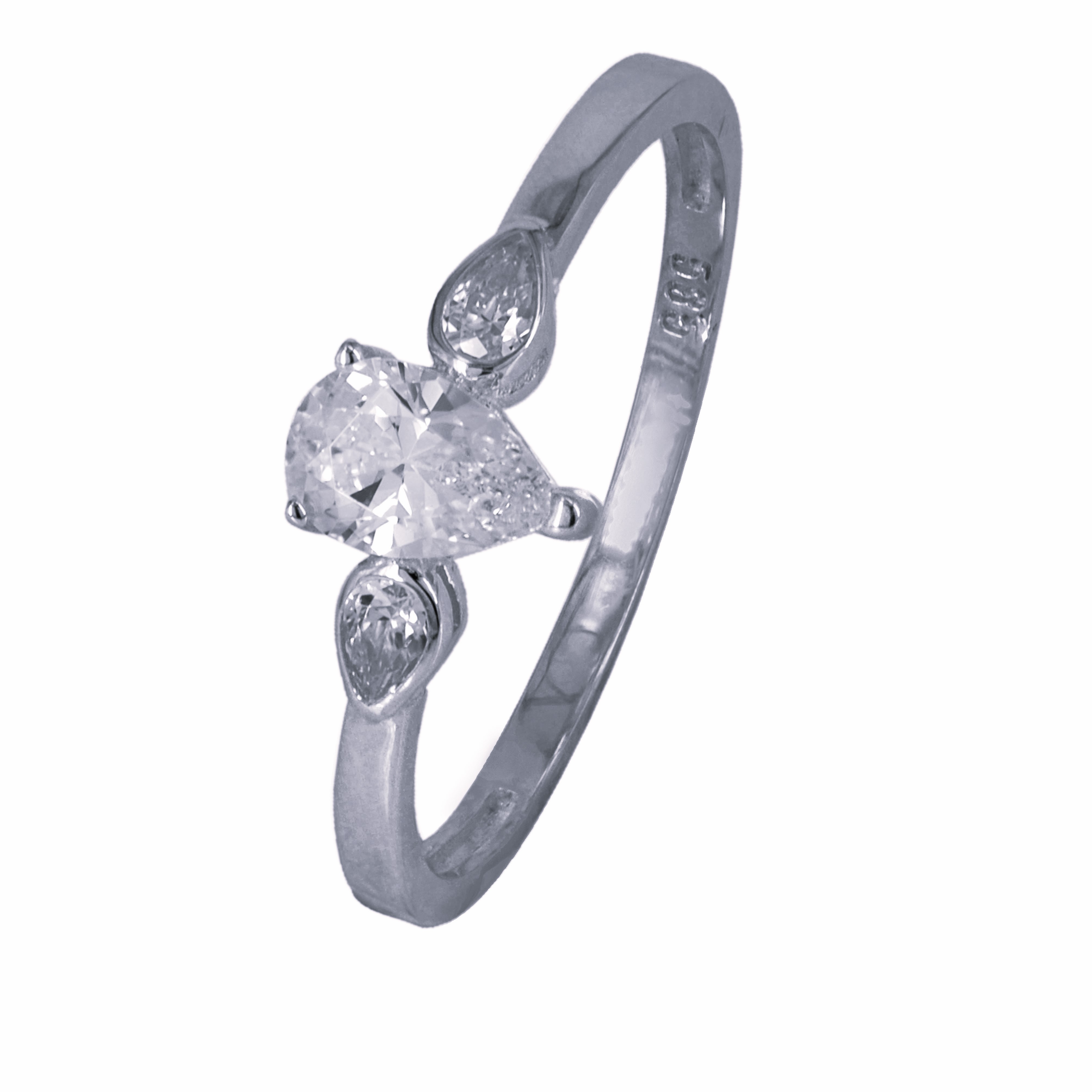 Μονόπετρο χρυσό 14 Καρατίων με λευκή πέτρα ζιργκόν Swarovski, σχέδιο δάκρυ.