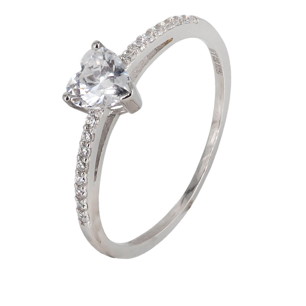 Λευκόχρυσο μονόπετρο 14 Καρατίων με μπλέ κεντρική πέτρα ζιργκόν Swarovski την οποία πλαισιώνουν μικρότερες λευκές πέτρες.