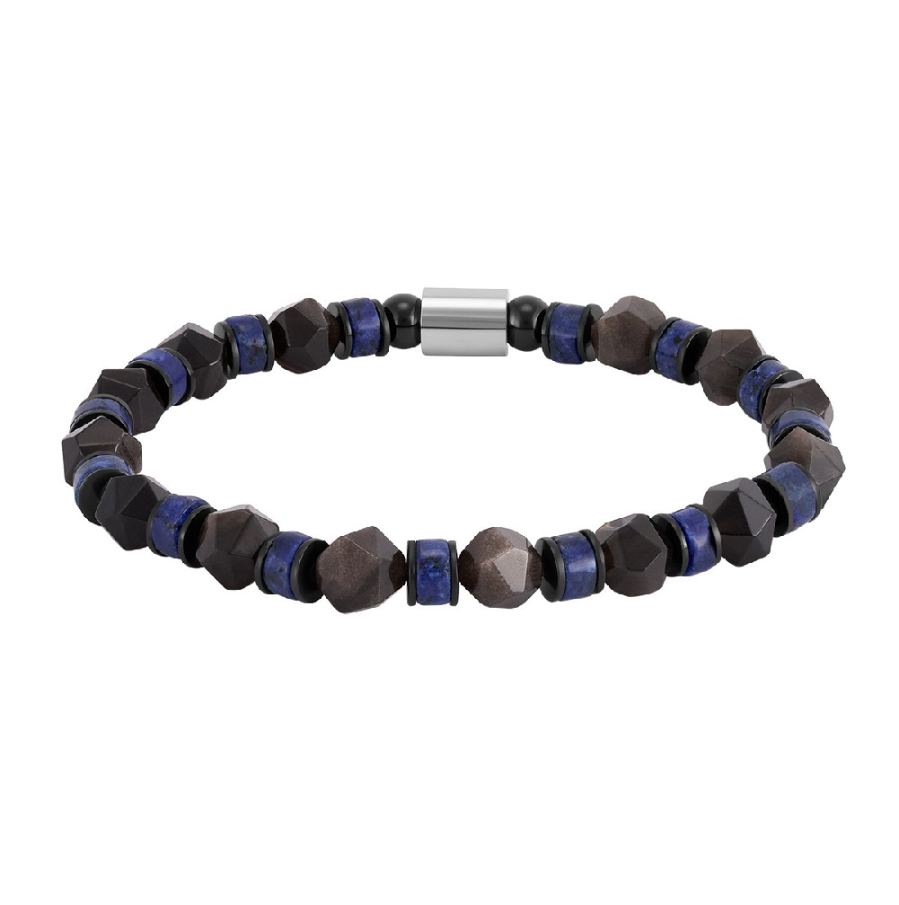 Ανδρικό βραχιόλι Police από ανοξείδωτο ατσάλι με πέτρες σε ασημί / καφέ / μαύρο / μπλε χρώμα.