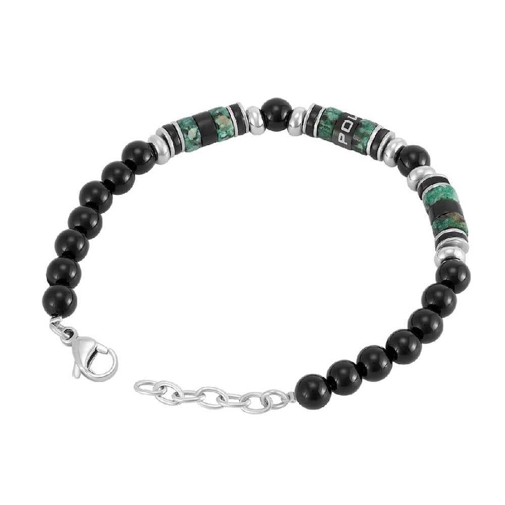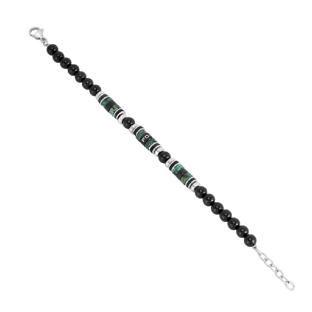 Ανδρικό βραχιόλι Police από ανοξείδωτο ατσάλι με πέτρες σε ασημί / πράσινο / μαύρο χρώμα.
