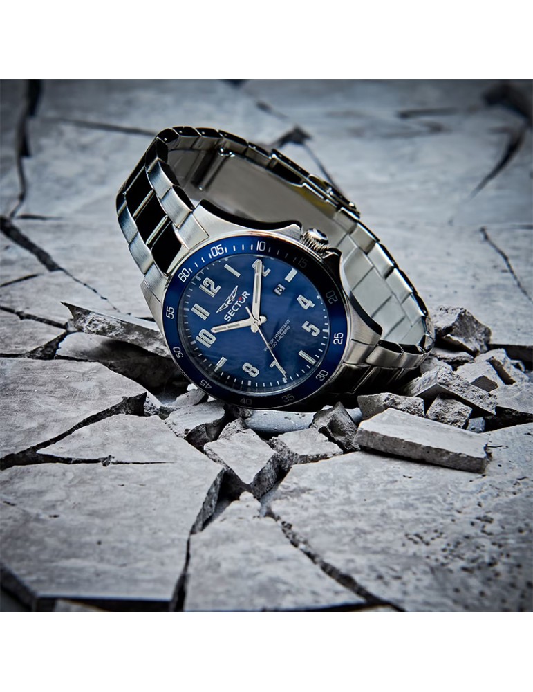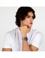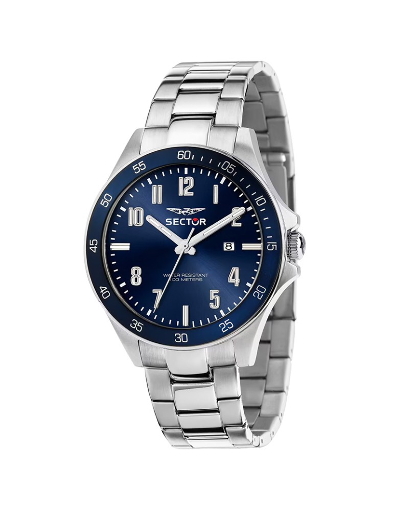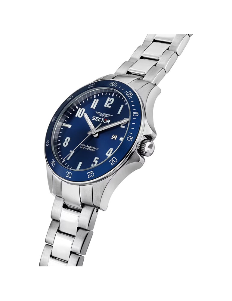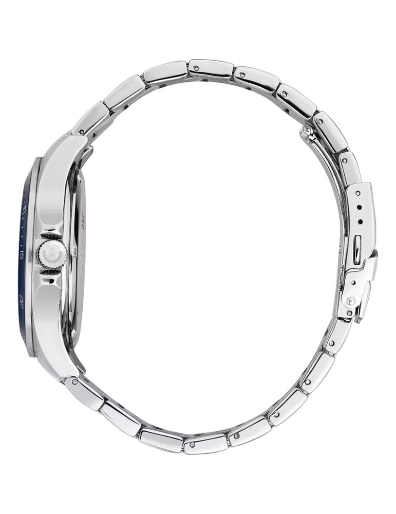 Κάσα: Ασημί με μπλε στεφάνη από ανοξείδωτο ατσάλι
