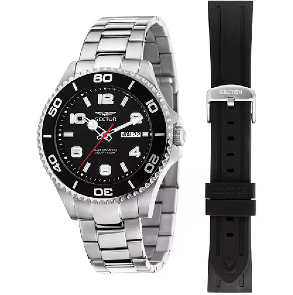 Κάσα: Ασημί ανοξείδωτο ατσάλι με μαύρη - μπλε περιστρεφόμενη στεφάνη