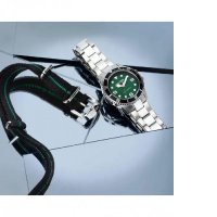 Διατίθεται σε κασετίνα με ένα επιπλέον  δίχρωμο μαύρο / πράσινο  λουράκι υφασμάτινο και εργαλείο τοποθέτησης του.