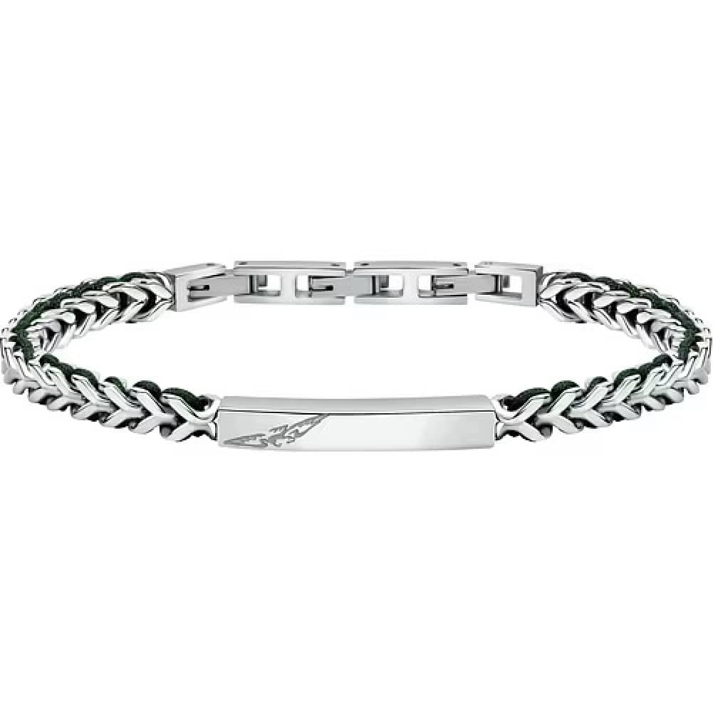 Sector Bandy Men's Silver Stainless Steel with Green Naylon String Bracelet SZV130
