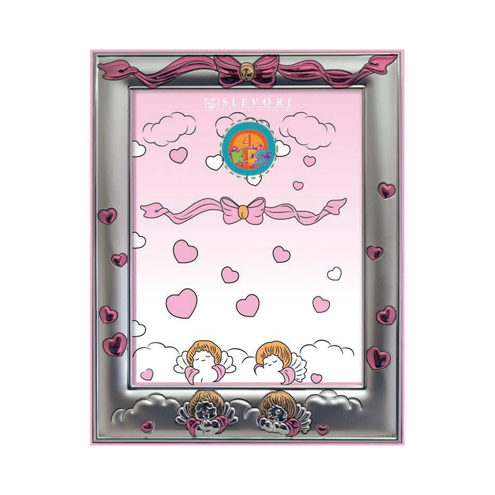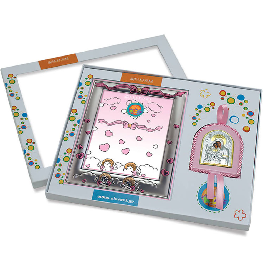 Ασημένιο παιδικό σετ 925 Αγγελάκια και εικόνα κούνιας με την Παναγία Άξιον Εστί.