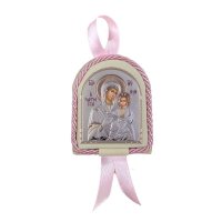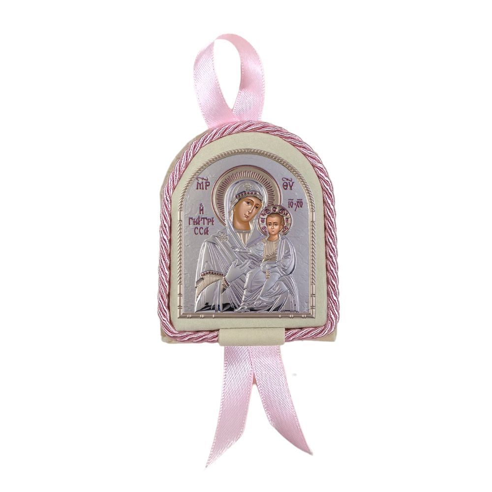Ασημένιο παιδικό σετ 925 Κάστρο και εικόνα κούνιας με την Παναγία την Γιάτρισσα.