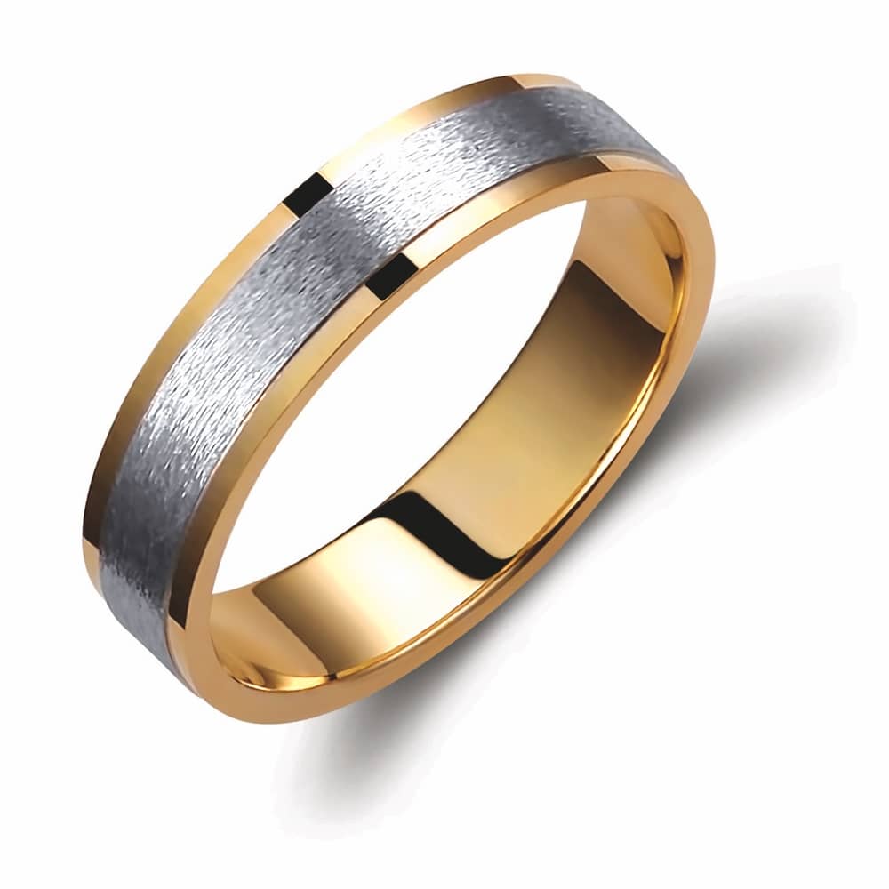 Ασημένια βέρα γάμου και αρραβώνα Valauro 925° με πλάτος 5mm, κίτρινο επιχρύσωμα και λευκό ματ φινίρισμα, σε εντυπωσιακή και διαχρονική γραμμή.