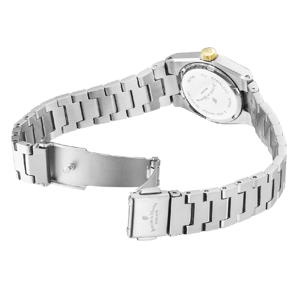 Κάσα: Λευκό ασημί ανοξείδωτο ατσάλι με κίτρινη χρυσαφί στεφάνη