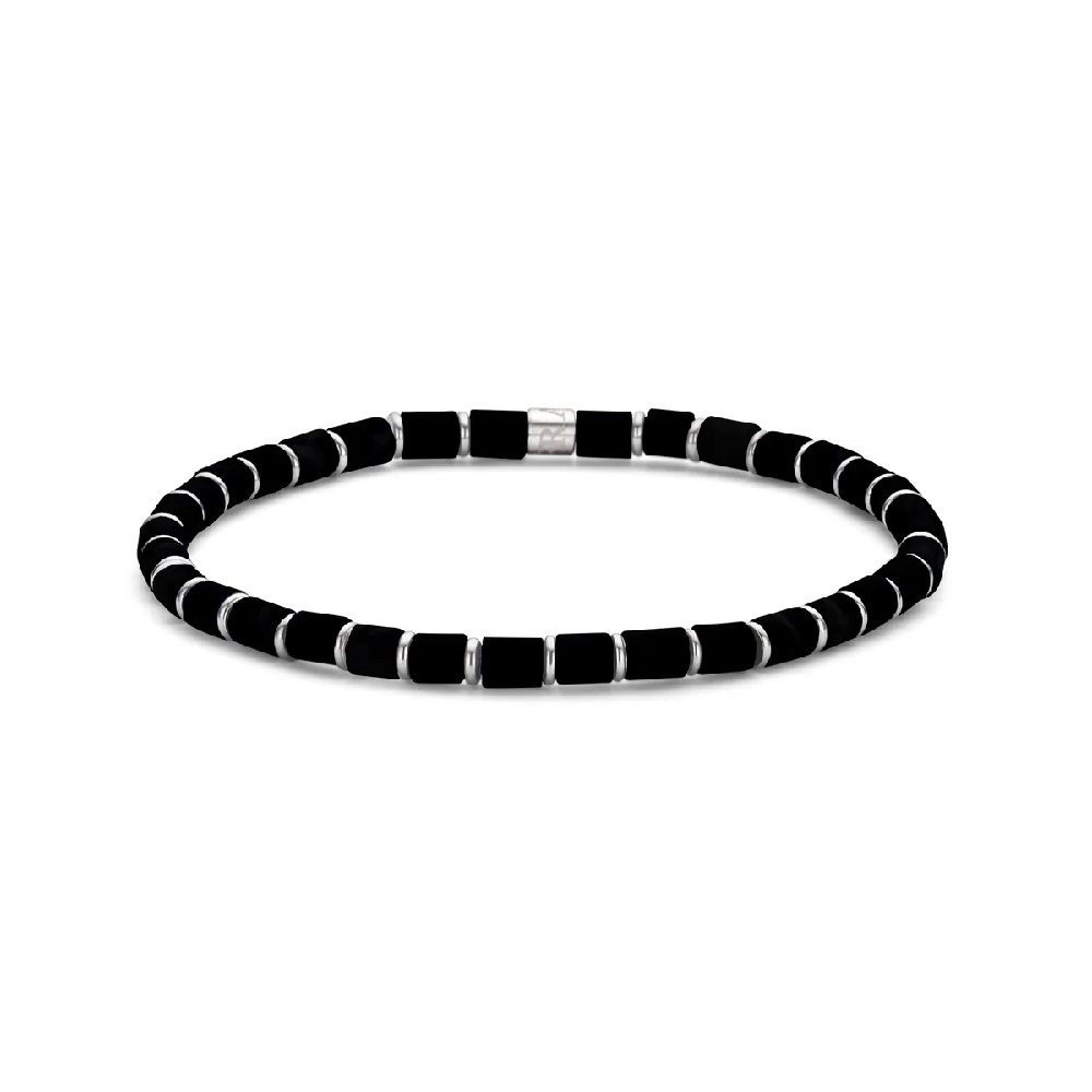 Ανδρικό ατσάλινο βραχιόλι συνδυασμένο με χάντρες από σοδαλίτη, ατσάλινα στοιχεία και ελαστικό σχεδιασμό, που προσφέρει στυλ και άνεση.