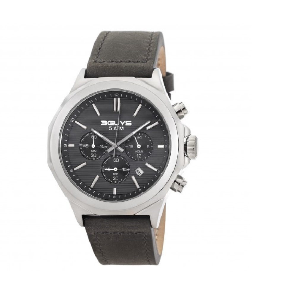 3Guys Men's Chronograph Watch Brown Leather Strap 3G40004