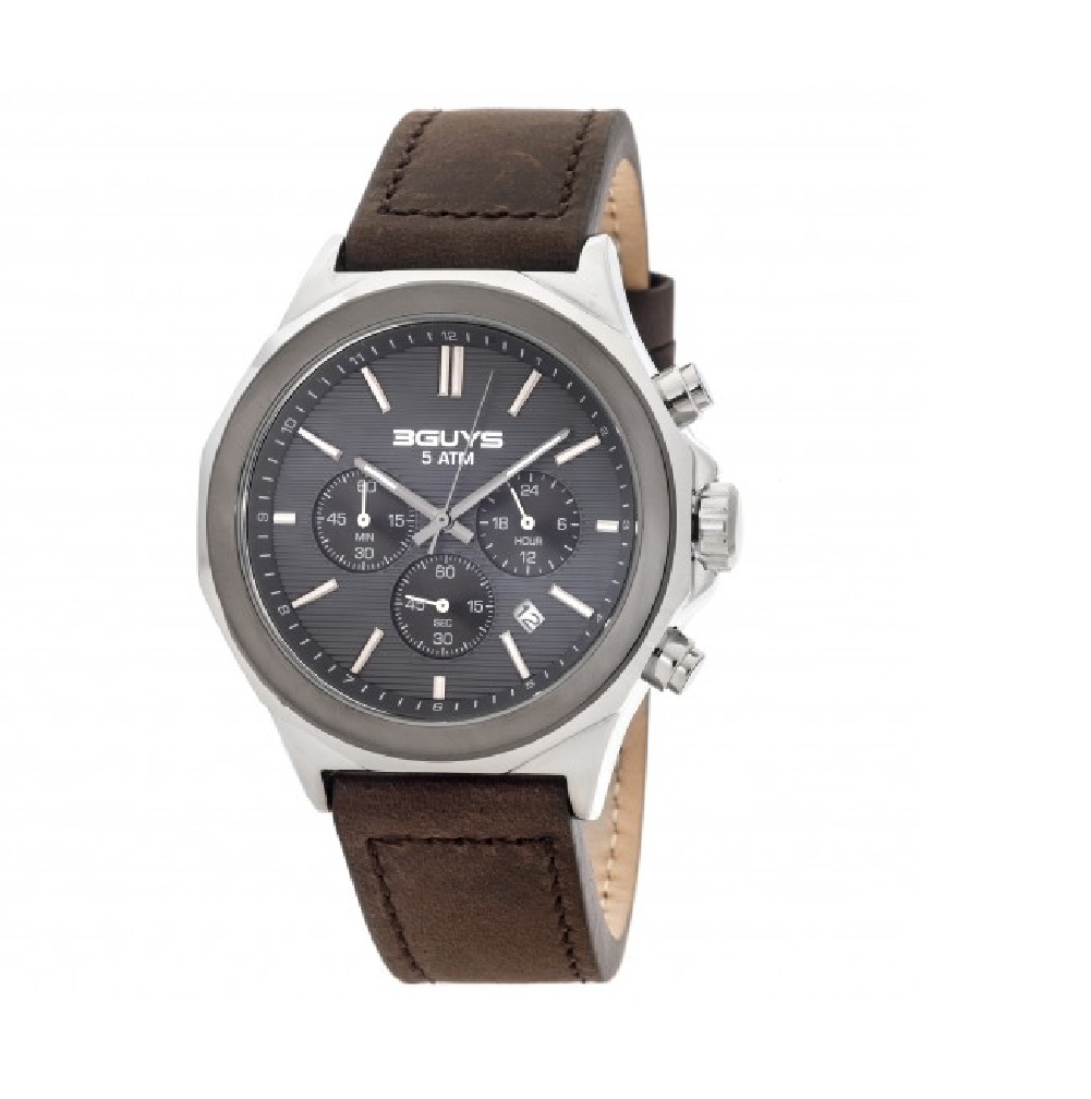 3Guys Men's Chronograph Watch Brown Leather Strap 3G40002