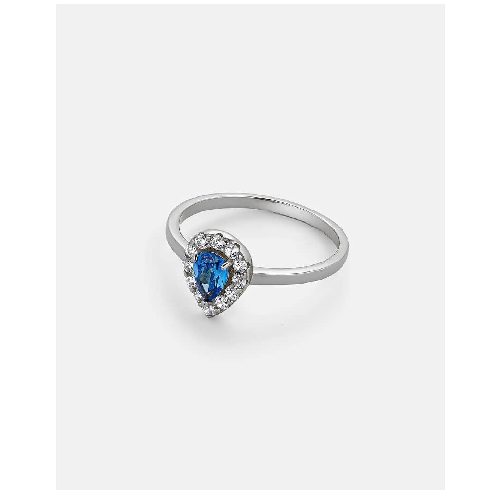 Δαχτυλίδι με μπλε zircon σε σχήμα δάκρυ από επιροδιωμένο Ασήμι 925°.