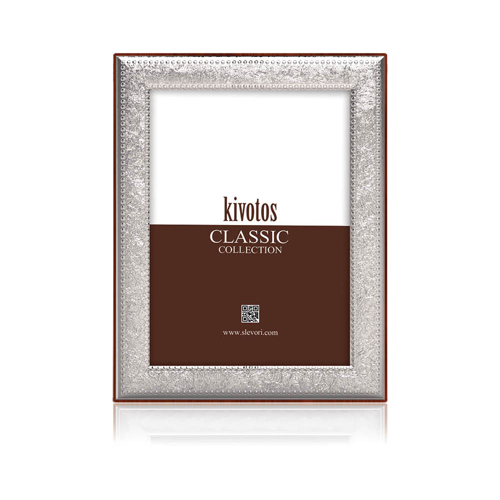 Κορνίζα από ασήμι 925, Slevori, με σφυρήλατο εφέ. Η πλάτη είναι ξύλινη σε καφέ χρώμα.
